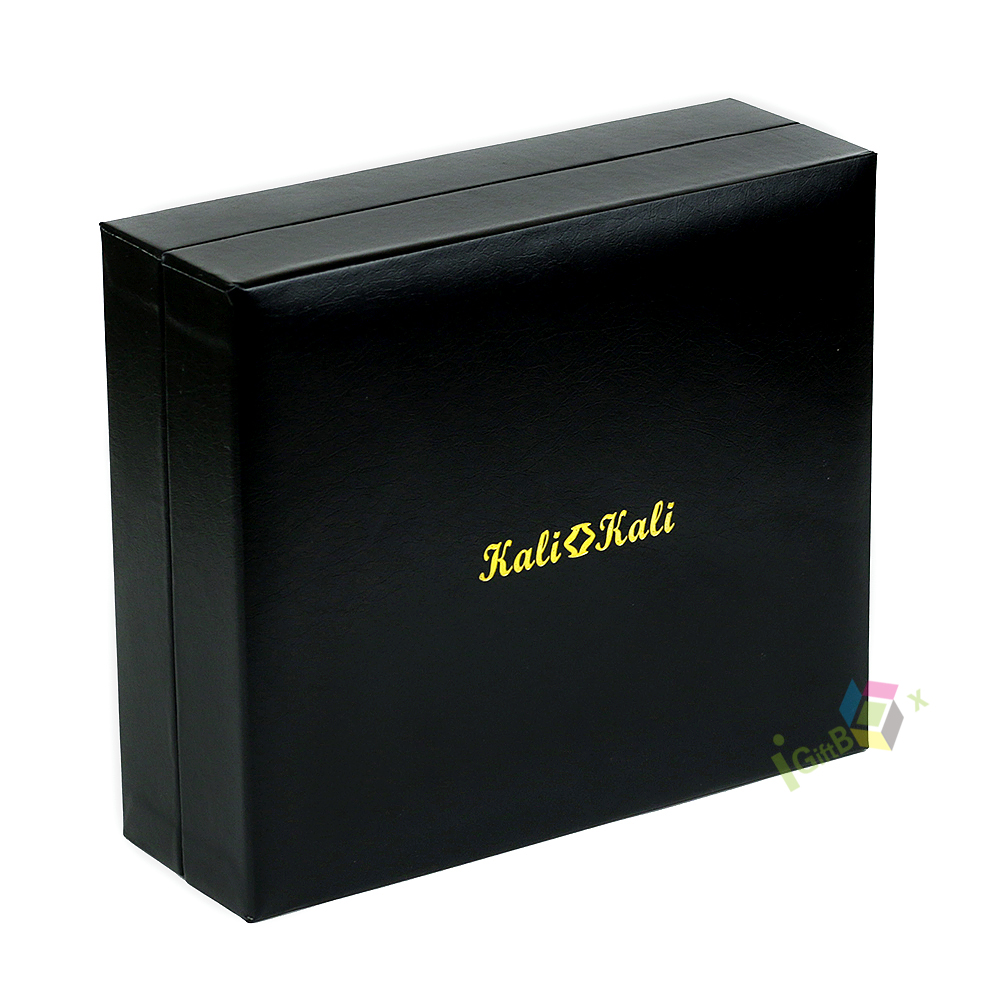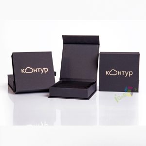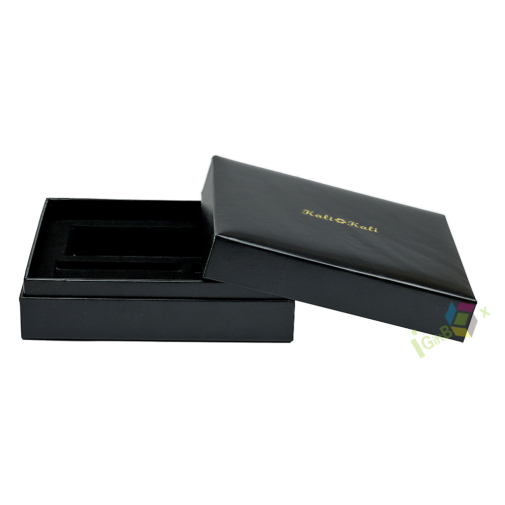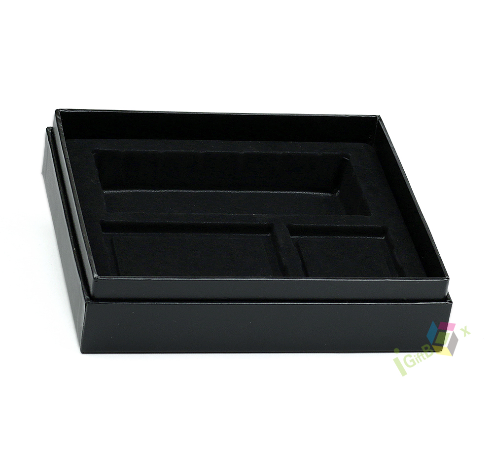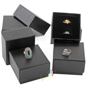 This premium black corrugated jewelry box features a sleek lid-and-base design with elegant gold foil logo branding on the lid. Crafted from sturdy flute board (corrugated paper) for durability, it includes a divided foam insert inside to securely hold and organize rings, earrings, pendants, and other small jewelry pieces, preventing scratches. The smooth matte black exterior delivers a sophisticated, high-end look, while the corrugated construction offers reliable protection for delicate items. Ideal for retail jewelry packaging, special occasion gifting, or brand displays, this box combines functional organization with refined branding.
