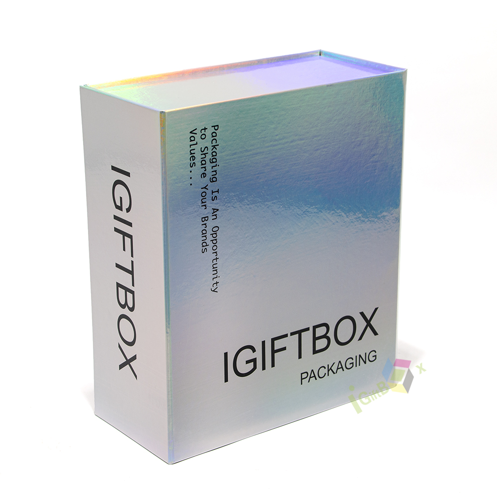 The holographic folding box adopts nanoscale optical coating technology, presenting a dynamic rainbow effect on the box surface, showing changing light and shadow from different angles, instantly attracting attention. It uses recyclable PET/paper substrates, with a lightweight design that saves space during transportation and is easy to assemble and disassemble. It supports logo embossing, laser engraving, and irregular cutting to meet the personalized needs of brands.