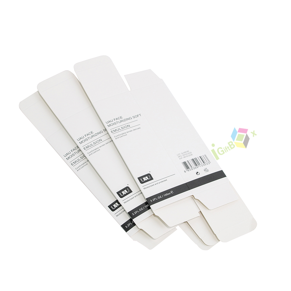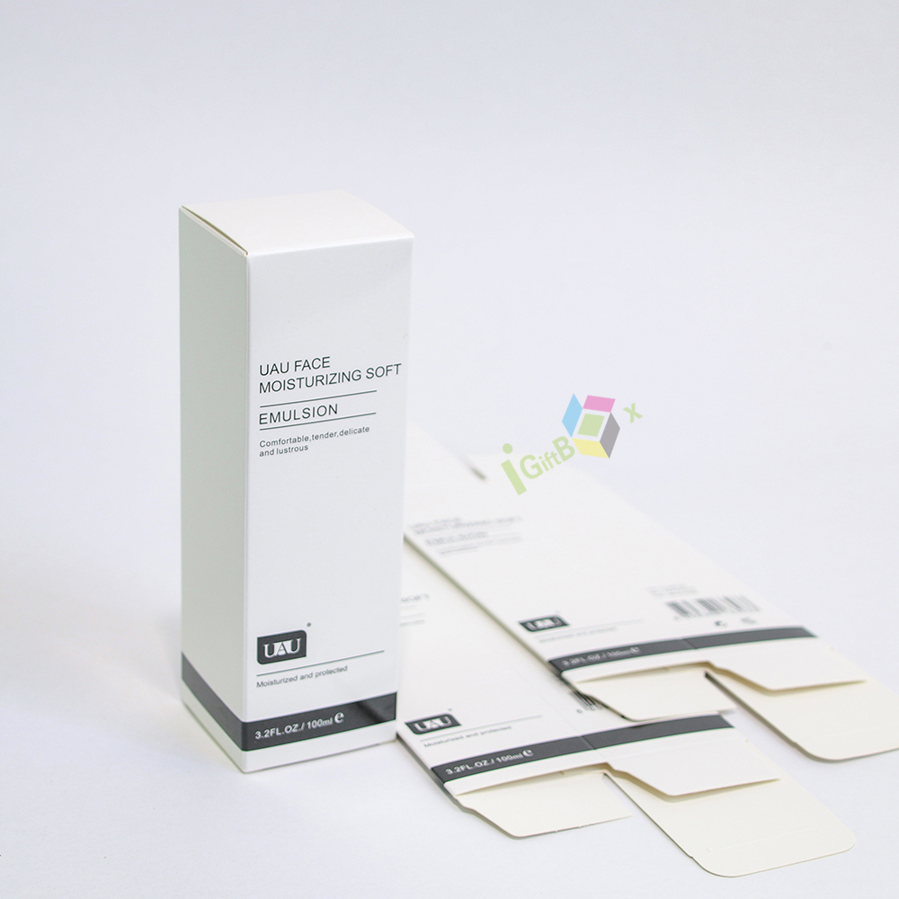 Eco-friendly white cardboard skincare box with rigid minimalist structure, providing sustainable protection and premium brand presentation for facial products.