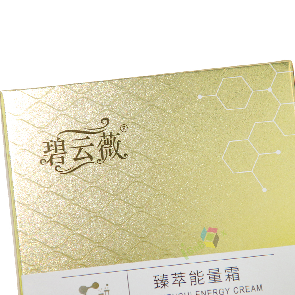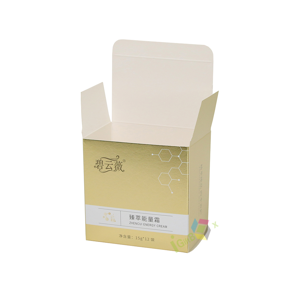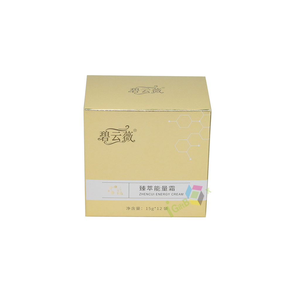 Square rigid gold skincare box with embossed wave pattern and hot stamping logo, offering a luxurious look for high-end skincare products.