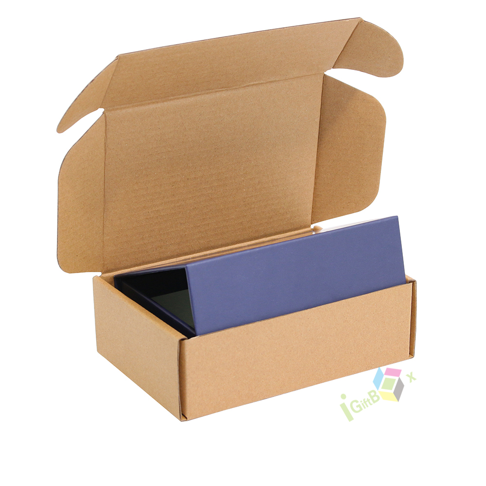 Natural kraft corrugated shipping box with a sturdy auto-lock closure, designed for reliable protection during transit. Crafted from recyclable corrugated paperboard, it offers a lightweight yet durable structure that optimizes shipping costs while safeguarding contents. The box accommodates nested smaller packaging (like the vintage-themed inner box shown) for layered protection and brand presentation, making it ideal for e-commerce, subscription boxes, and retail shipments. Its plain kraft finish supports custom branding or labeling, balancing eco-friendliness with practical functionality.