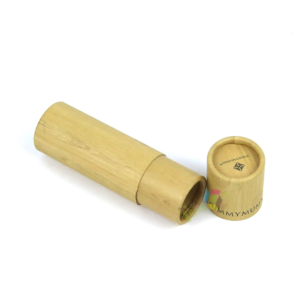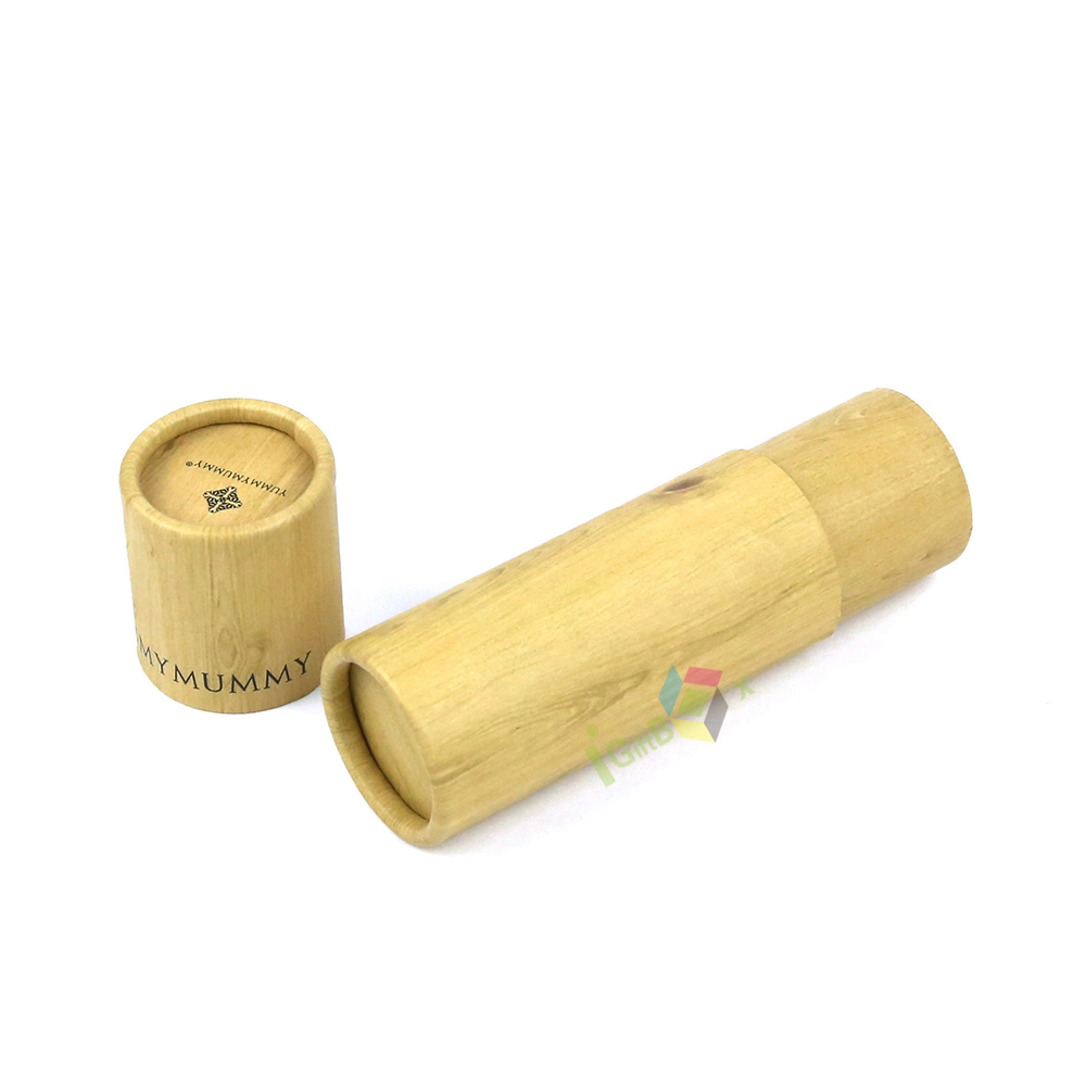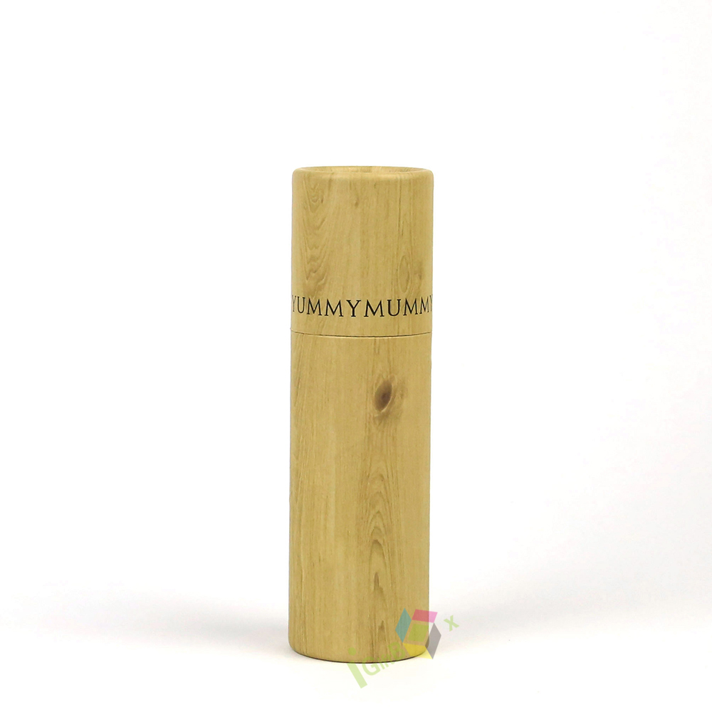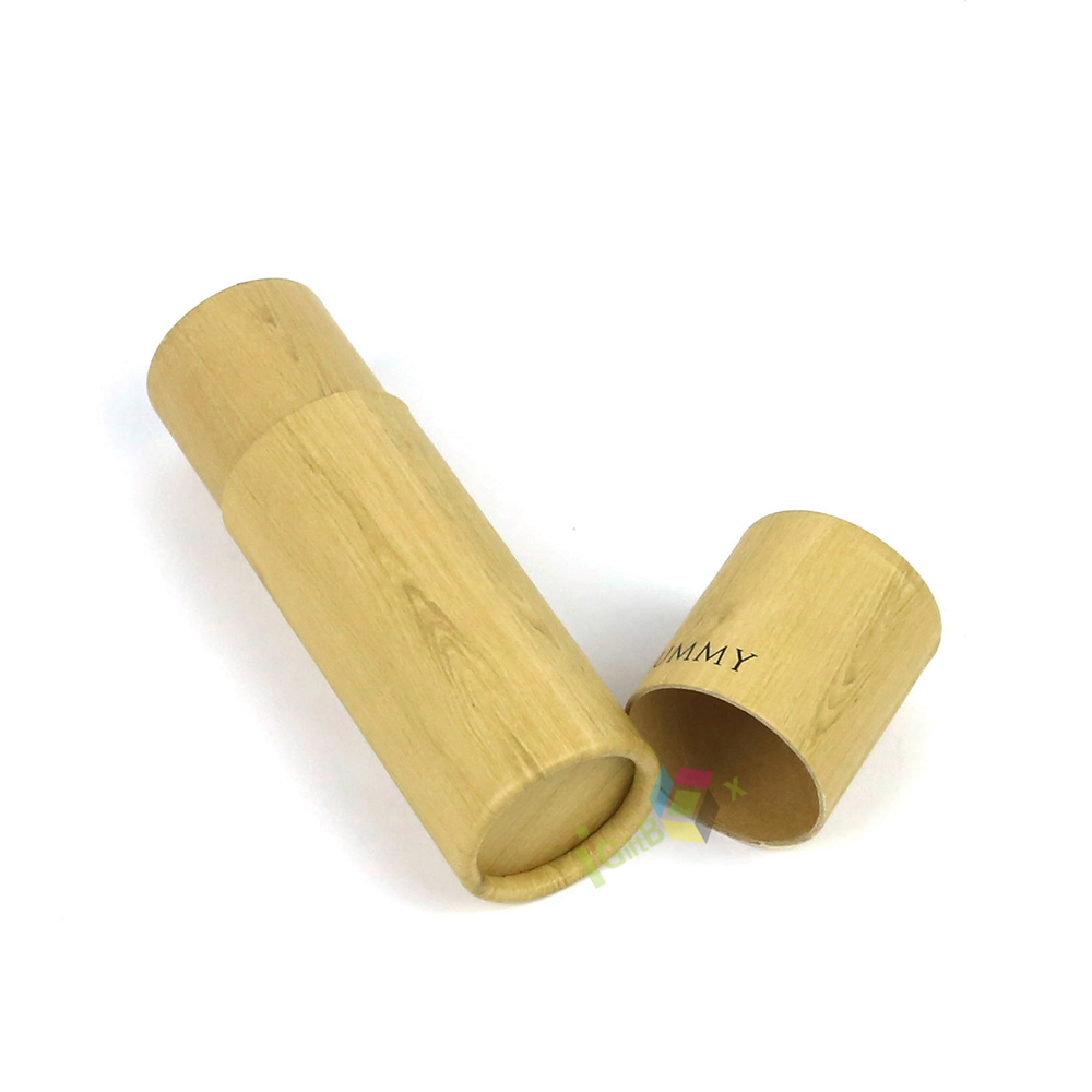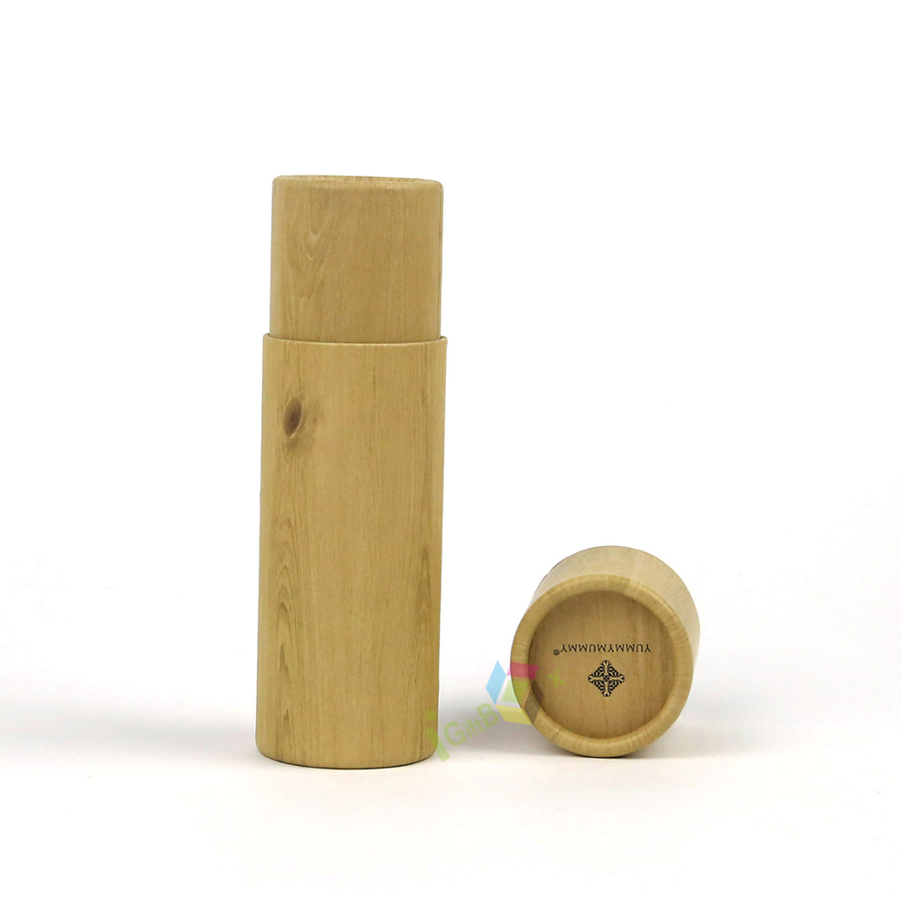 These eco-friendly cylinder paper tube boxes feature a natural wood grain print, creating a warm, rustic aesthetic perfect for cosmetics, skincare, or small gift packaging. Crafted from sturdy recycled paperboard, they are lightweight yet durable, offering reliable protection for products while aligning with sustainable branding values. The push-on lid design ensures a secure closure and easy access, and the custom printed logo adds a personalized touch. Available in two sizes, these versatile tubes are ideal for retail display, eco-conscious gifting, or premium product packaging, combining natural charm with practical functionality.