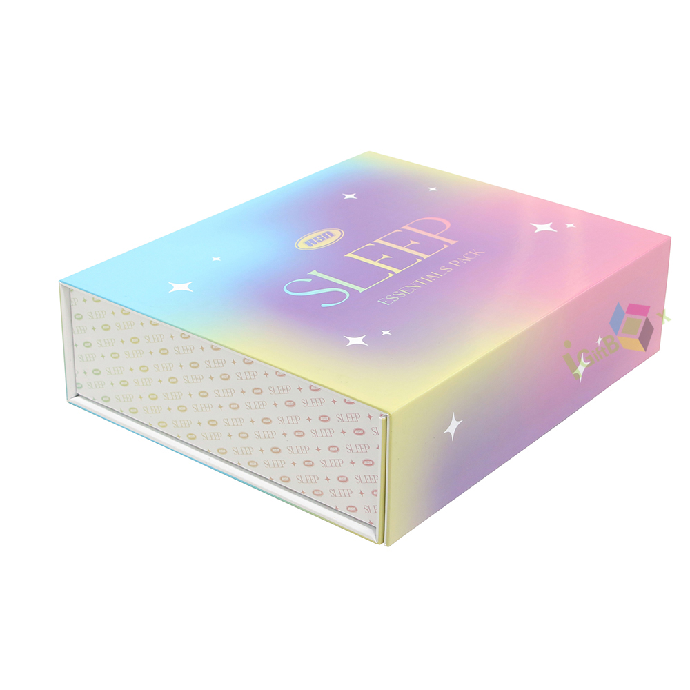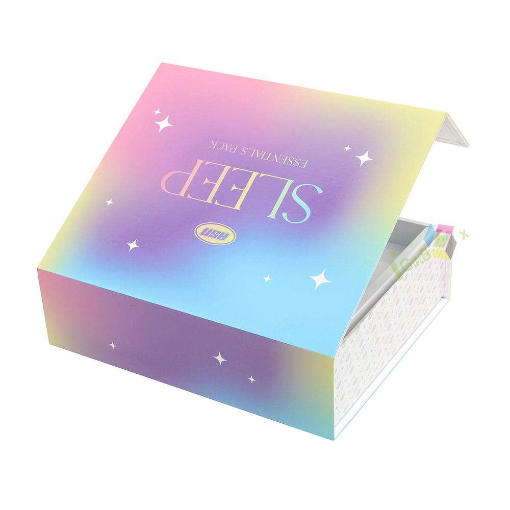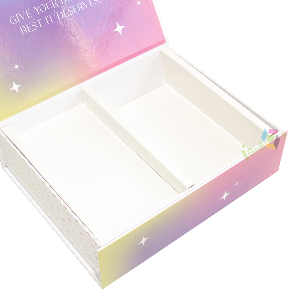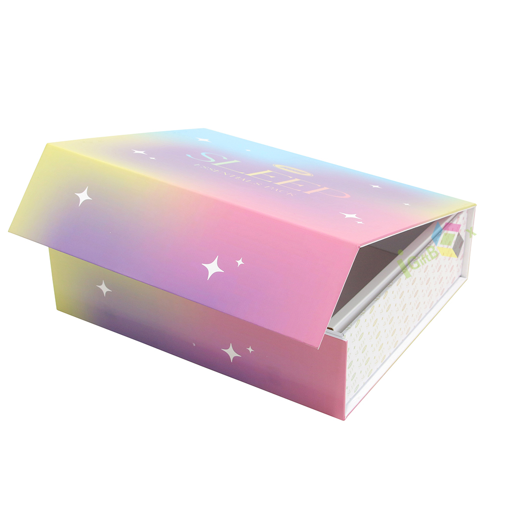 Starry sky gradient rigid gift box with magnetic closure and compartment insert, offering a luxurious unboxing experience for apparel and gift sets.